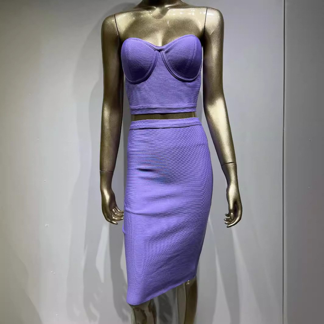 an fashion bage skirts sexy tube top short top high waist short skirt two -piece banquet dress