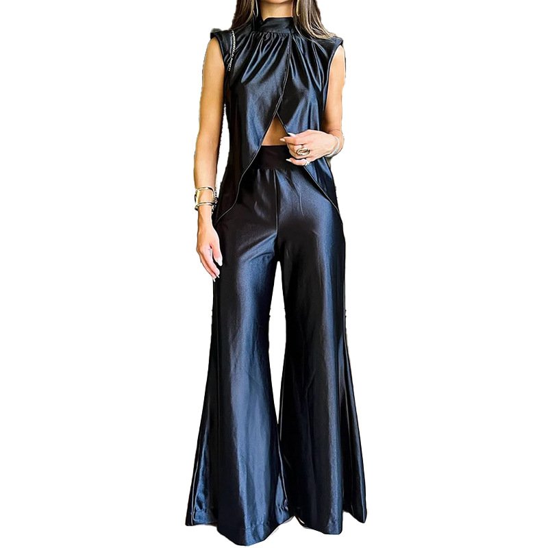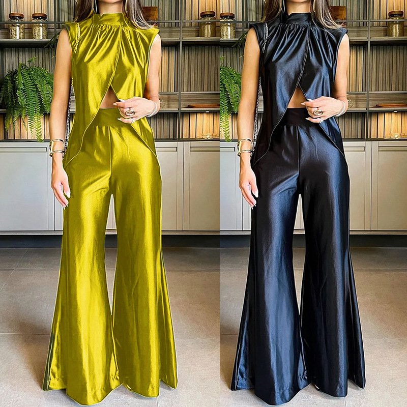 an summer new women’s dopamine wears sleeveless tops, high waist wide -leg long pants, two -piece