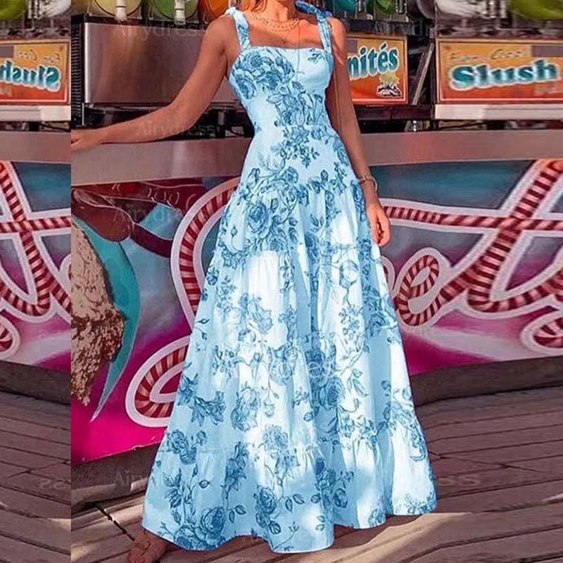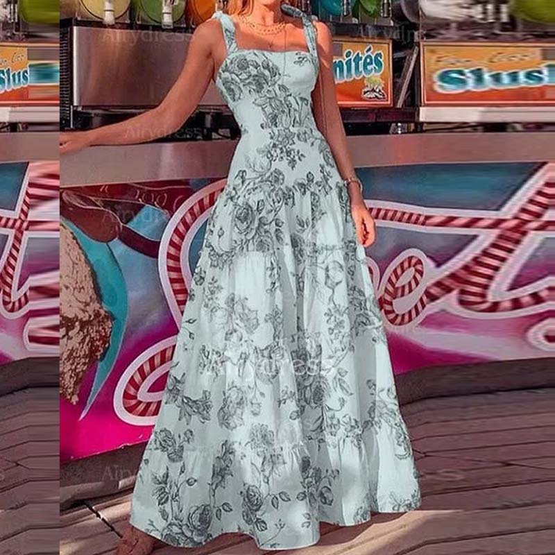 an women’s new commute camisole long skirt temperament elegant print high waist dress