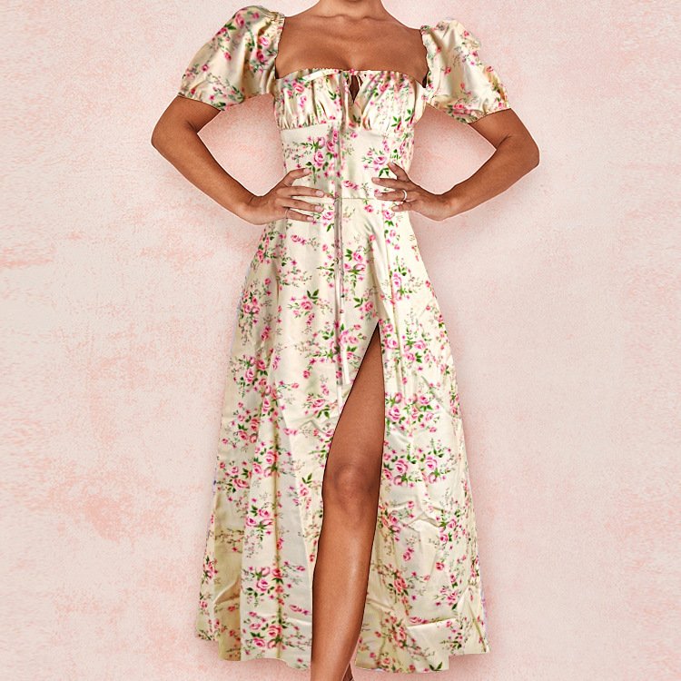 an women’s summer new printed French floral dew back repair camisole bidding dress