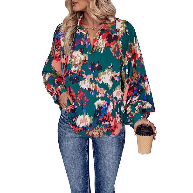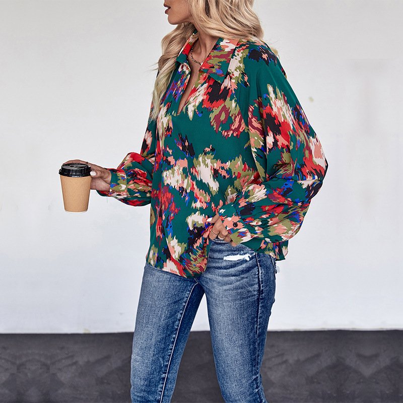 autumn new shirt casual flower shirt lapel long -sleeved shirt printed shirt