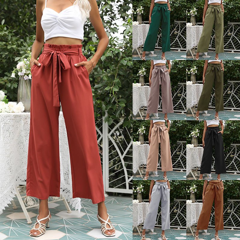 cargo Independent Station Spot Source High -waist an Pants Children Pure Color Nine Wide Leg Pants