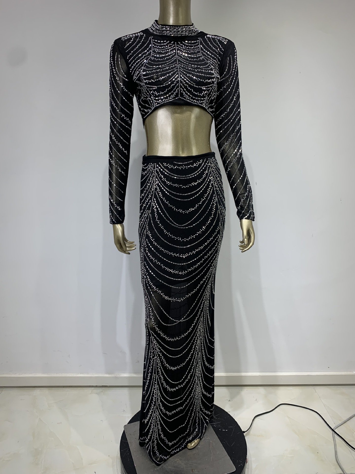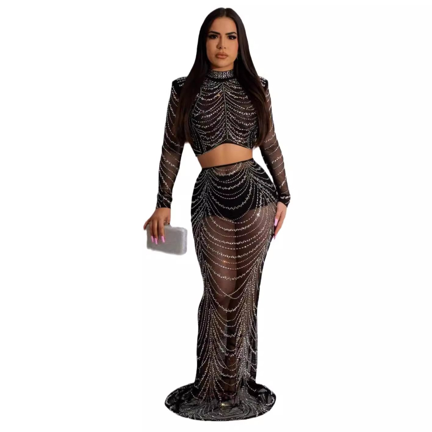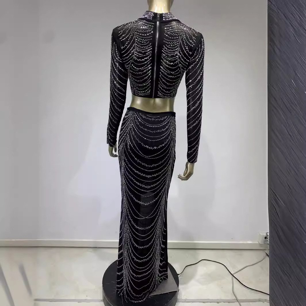 Be the first to review “Hot Sale Evening Dress an sexy perspective rhinestone short top high waist skirt suits”
