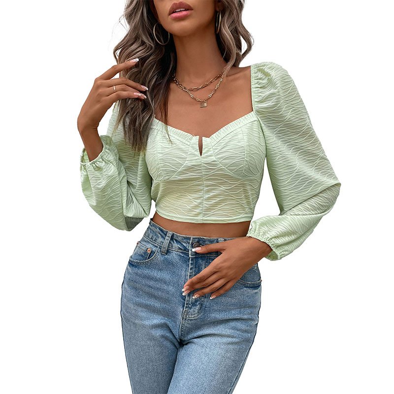 Independence Station Early Autumn Fashion New an women’s pure -colored French collar bubble sleeve shirt women