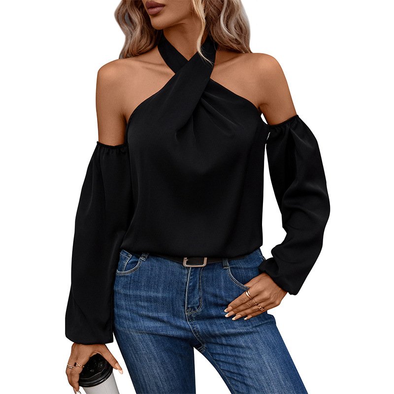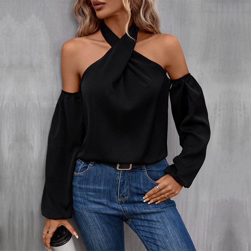 Independence Station Wholesale Autumn New an Women’s Pure Color Oks Shoulder Long -sleeved Shirts
