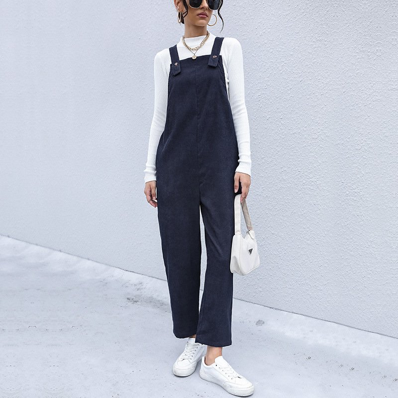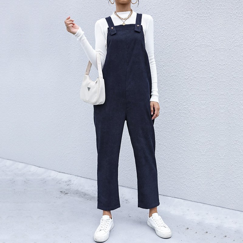 Independent Station Autumn New Product Warm Light Cordon Pants Loose Pure Color Nine -point Back Tibbing Pants