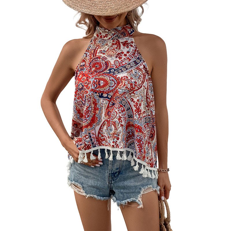 Independent station National Wind Vest Summer New an sleeveless fringe hanging neck shirt