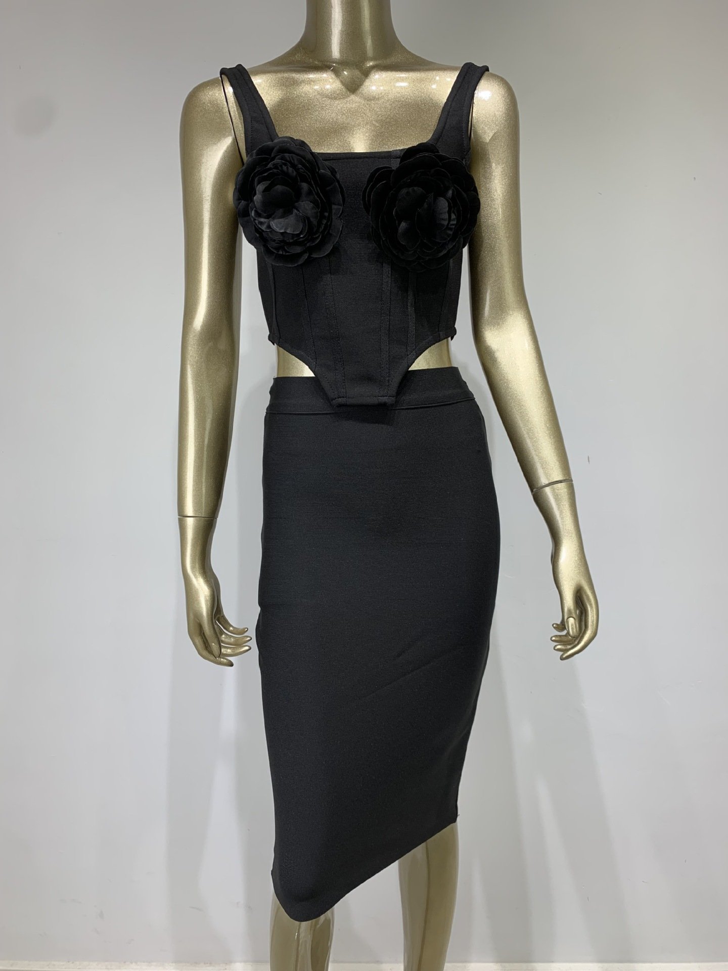 New bage skirt set pop -up flower vest skirt two -piece an high street dresses