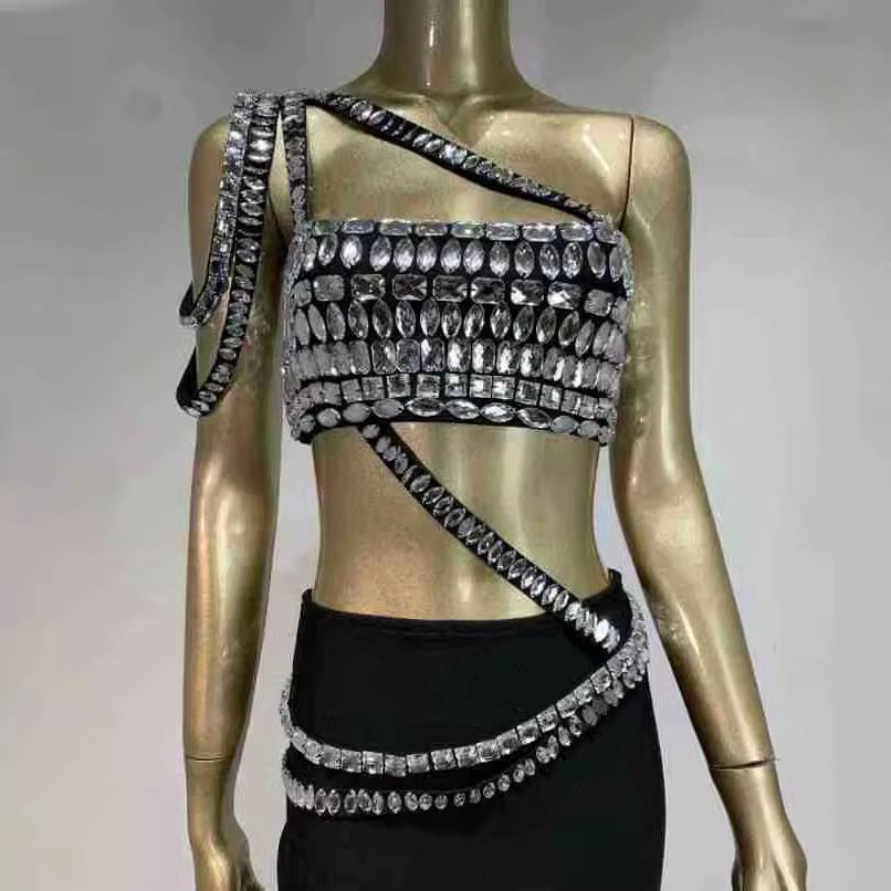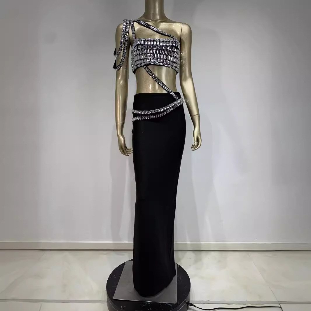 New explosion rhinestone bage skirt set an fashion banquet party two sets of dresses