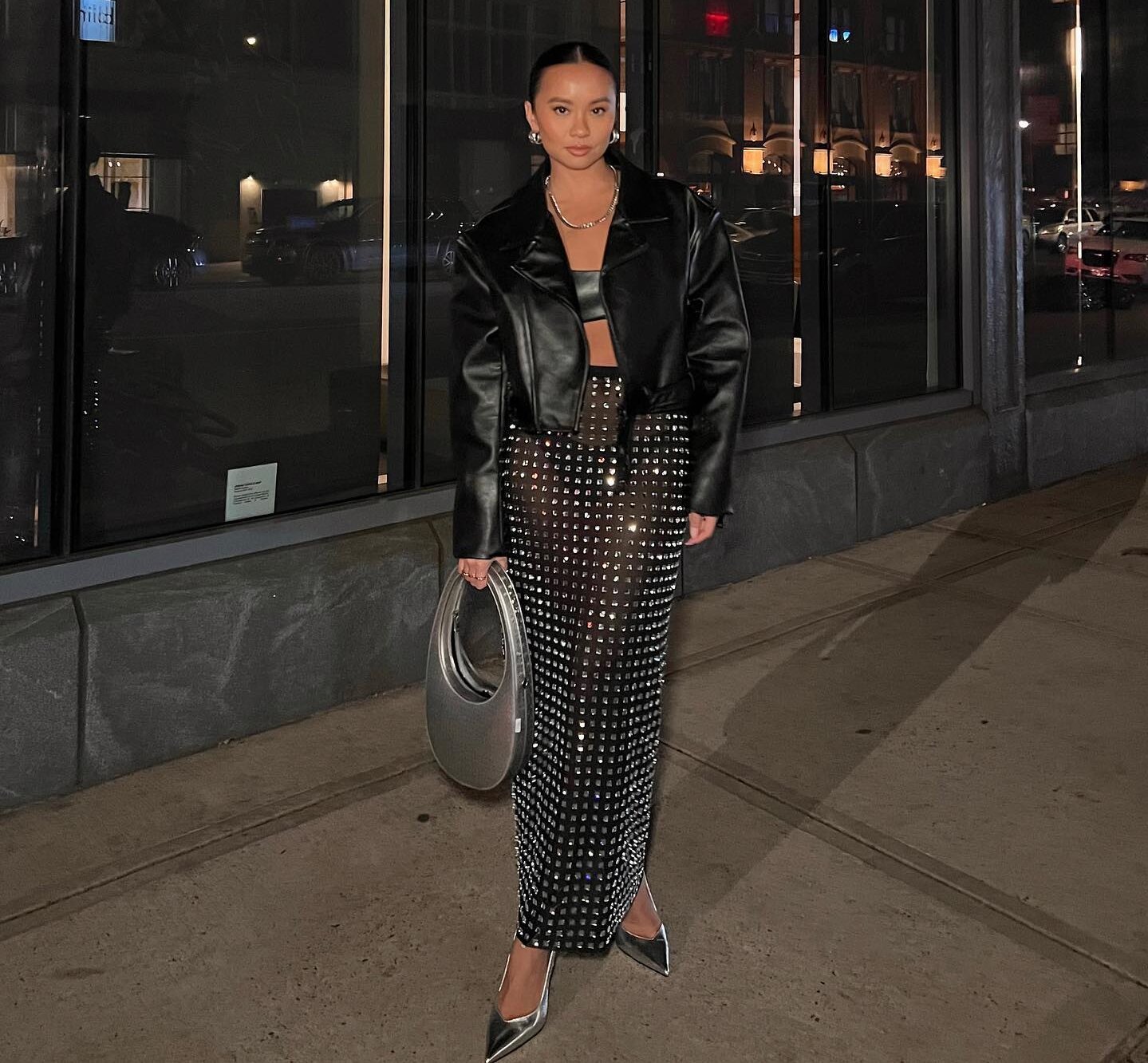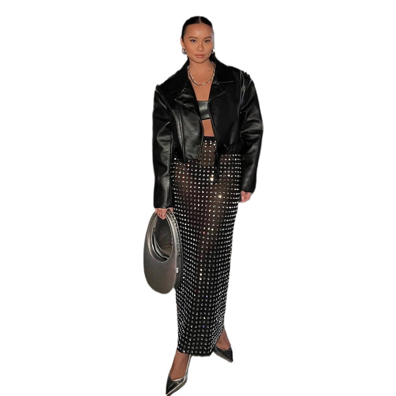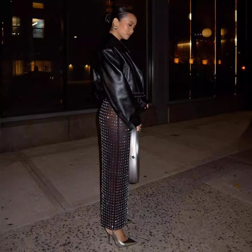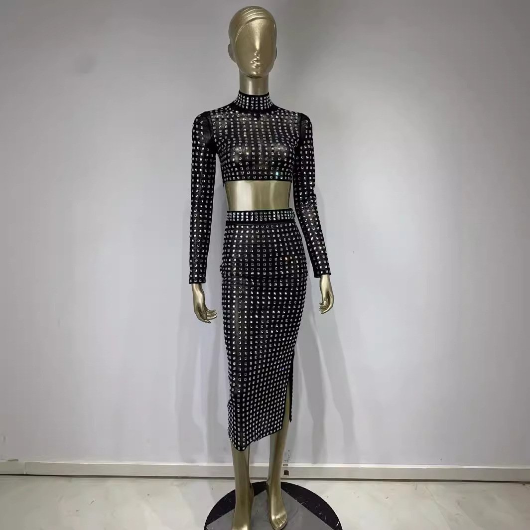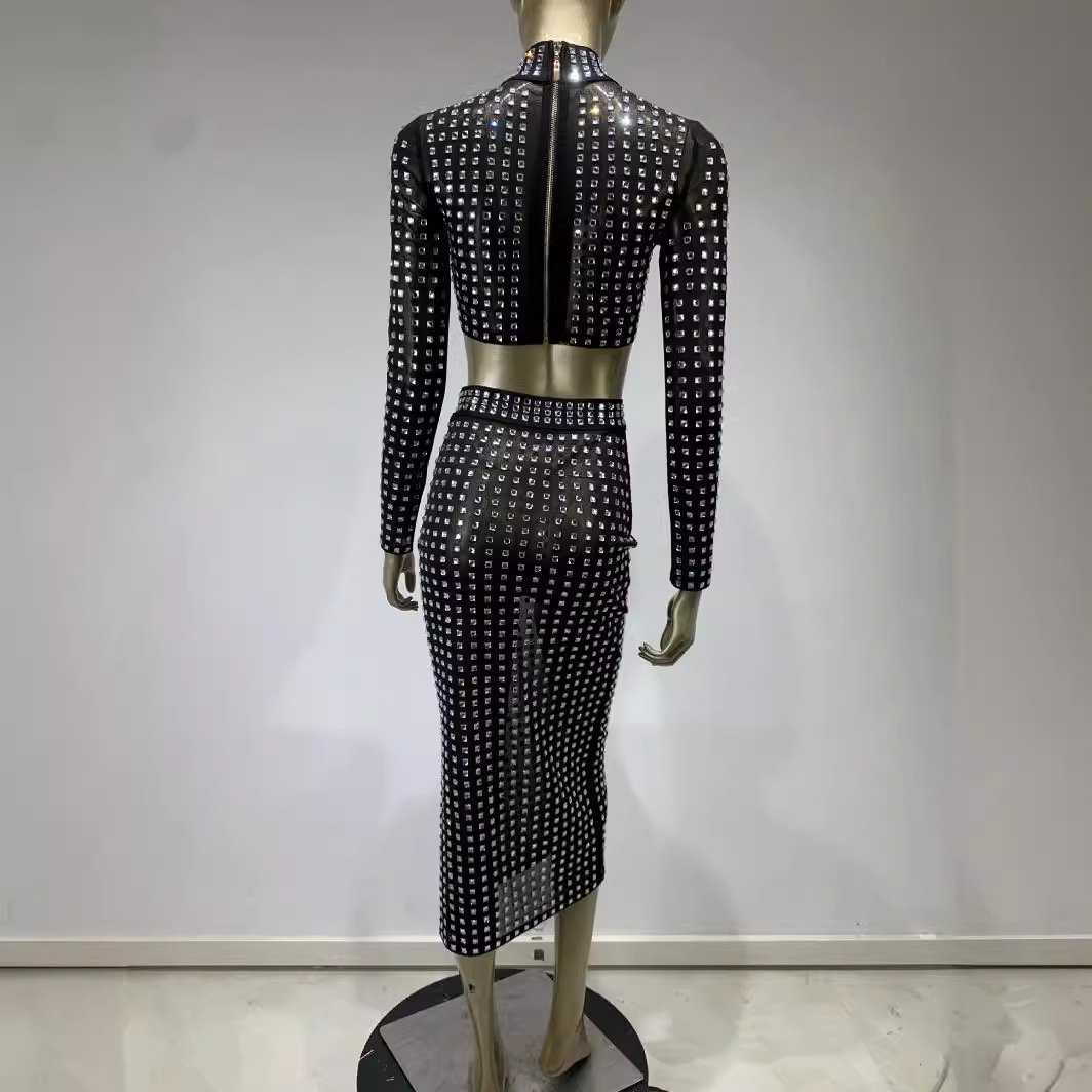 New product an fashion sexy black rivet skirt set explosion high street party set