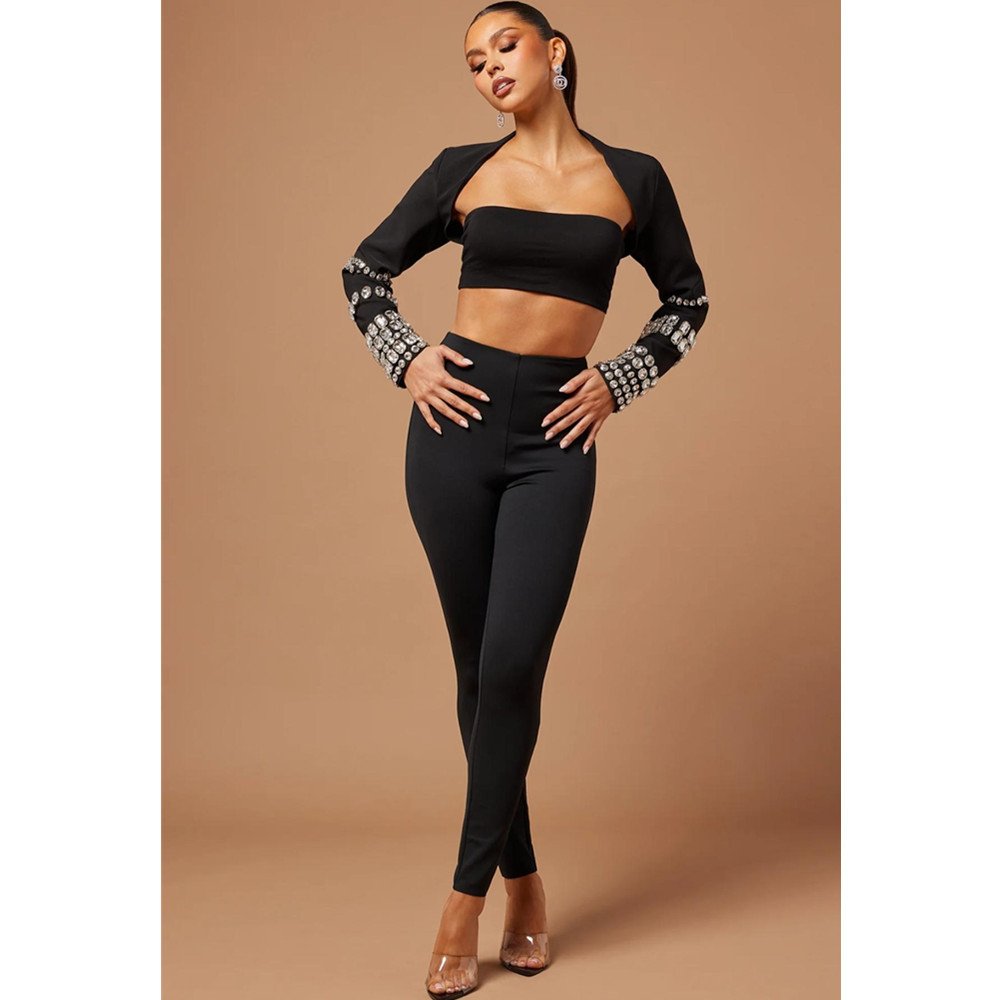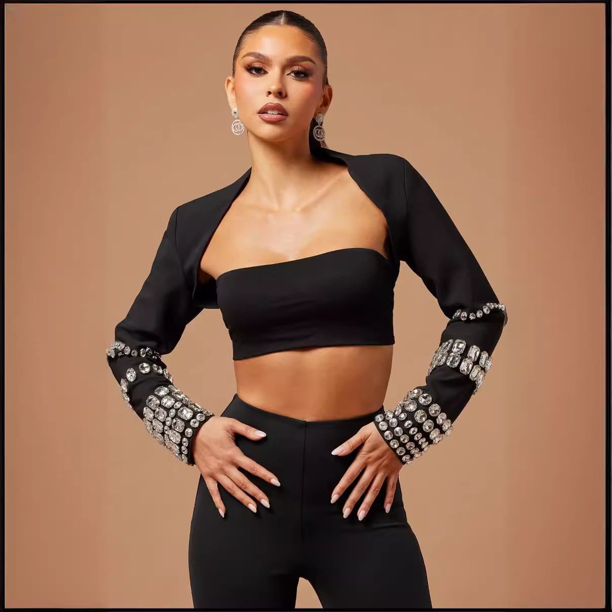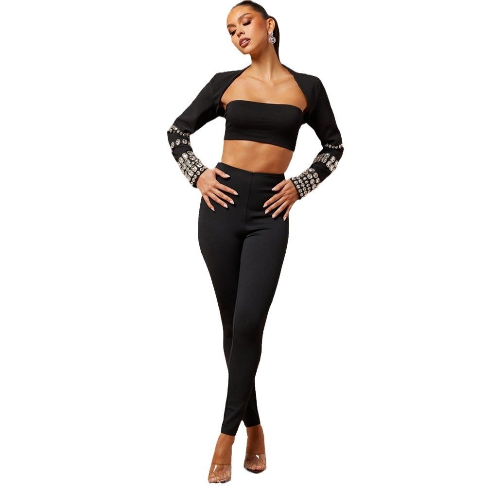 New product bage pants set explosion an fashion rhinestone three -piece high street party dress