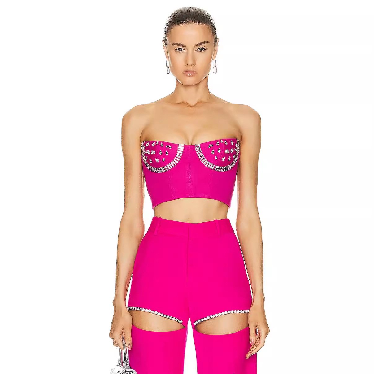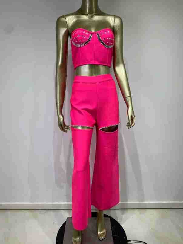 New product explosion rose rose bage set an high street fashion tube top top wide -leg pants set