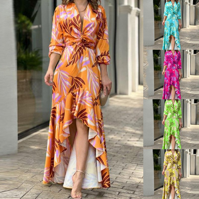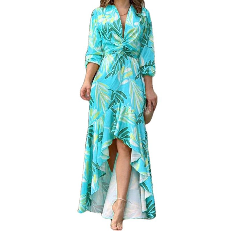 ‘s new an trendy summer women’s fashion printing lace high -waisted elegant split dress