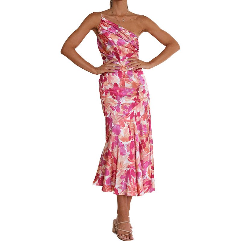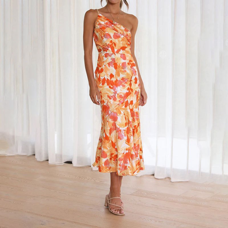 ‘s new an women’s clothing trendy stamp collar off -the -shoulder fishtail camisole dress