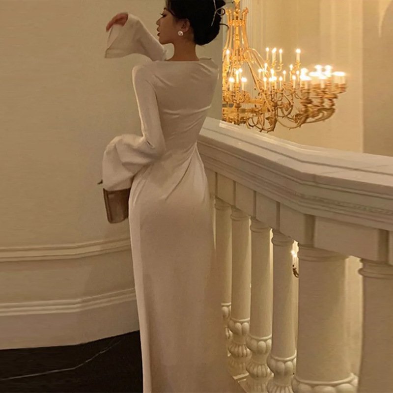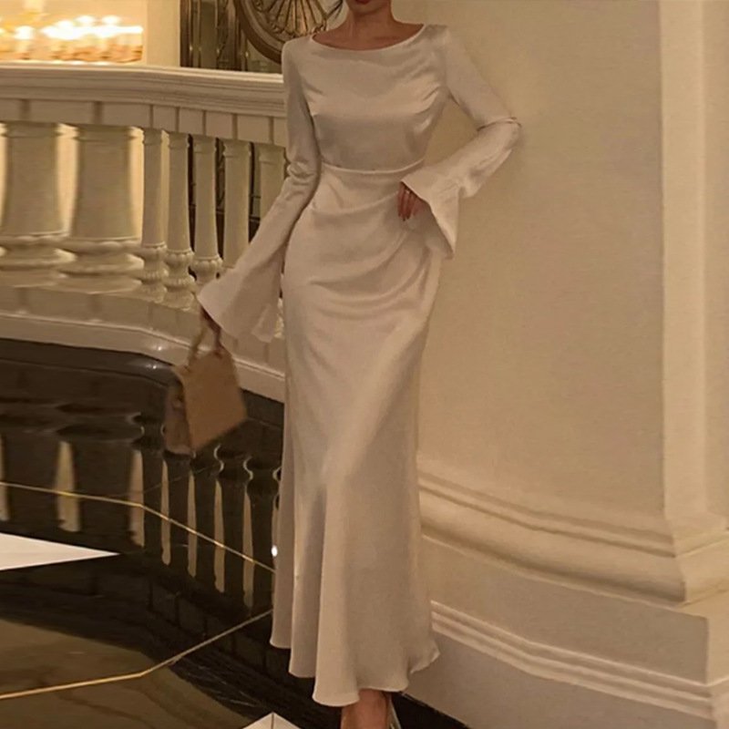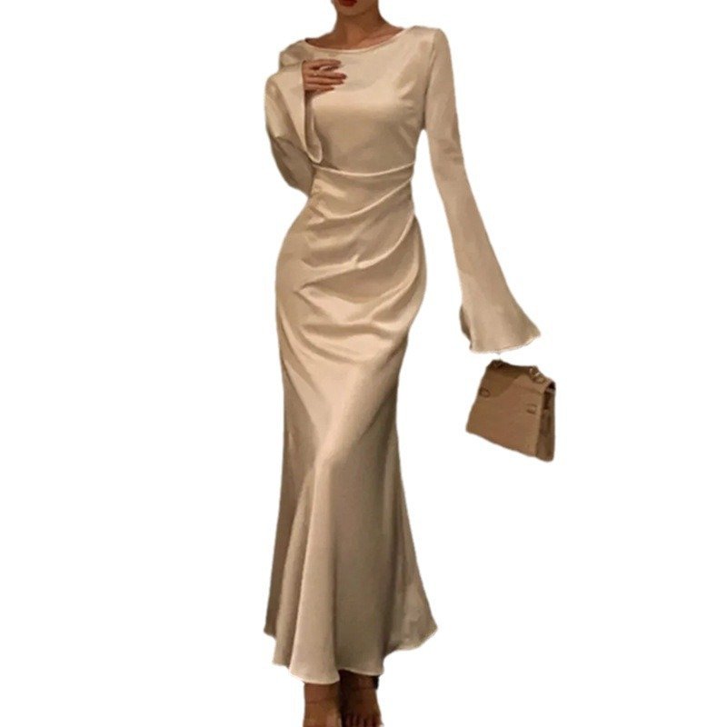 SpeedSmocks Summer Summer New Pure Circle Long Sleeve Limp Located Time Dress Dress an Women