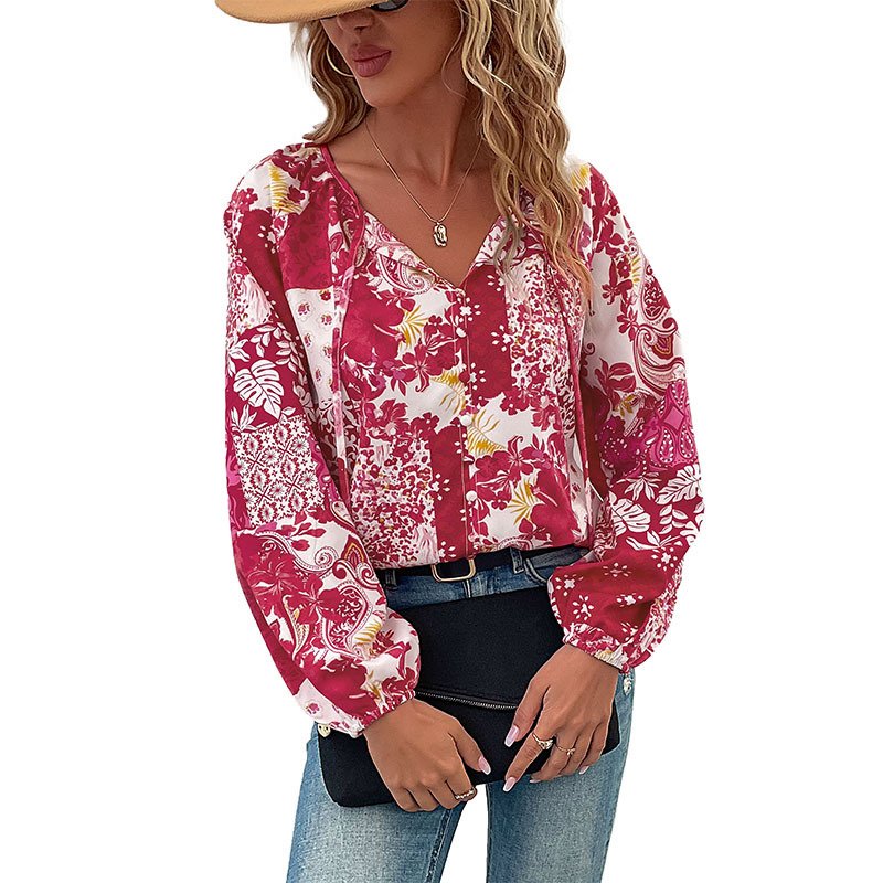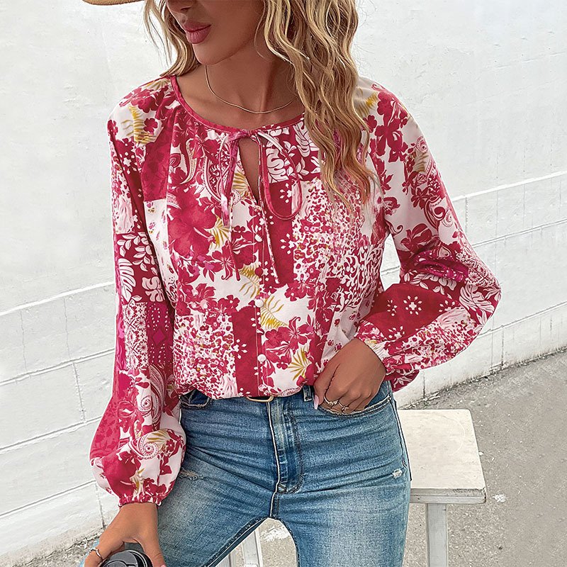Spring Autumn Casual Printing Shirts Fashion an Women’s Clothing Circles Bottom sleeve women’s shirt