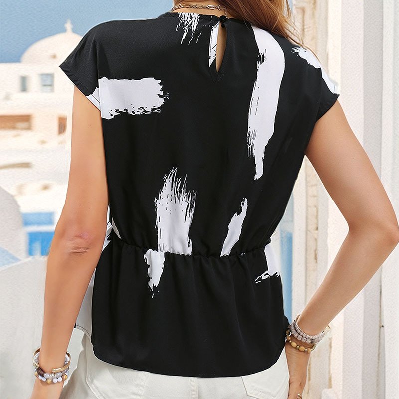 Summer commuting simple shirt an fashion women’s waist short sleeve temperament stroke print tops