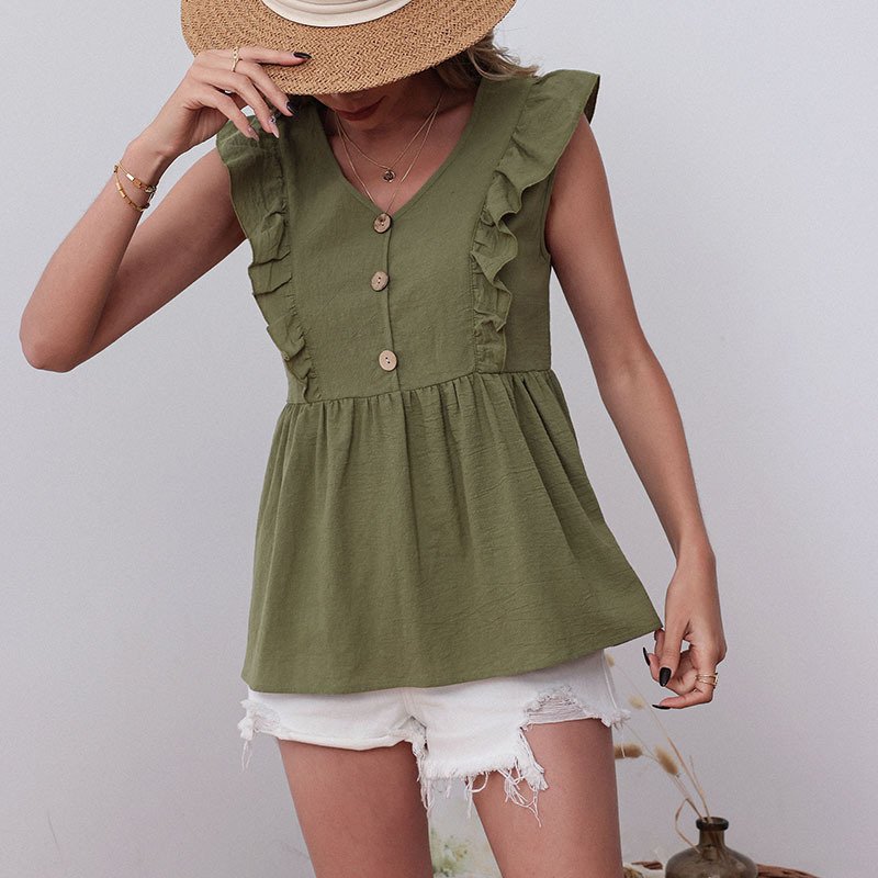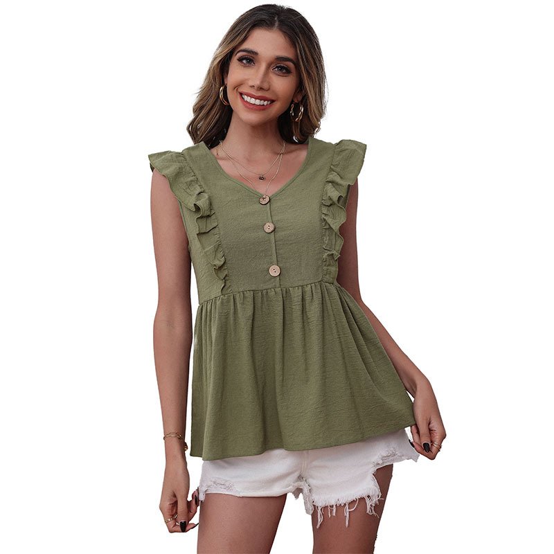 Be the first to review “Summer folds, cotton linen women’s clothing an peach heart collar design sense lotus leaf shirt”