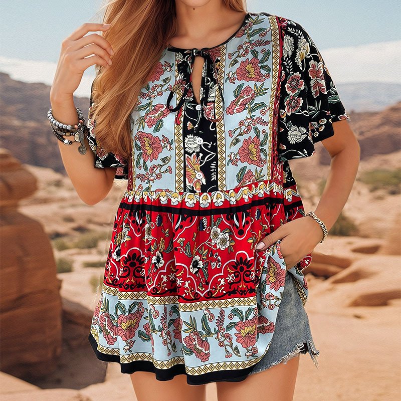 summer new women’s an leisure fake wind coats strap printed lotus leaf sleeve shirt